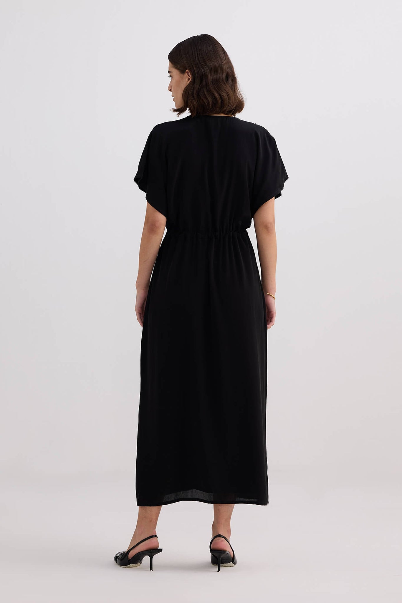 V-neck Gathered Maxi Dress | Black